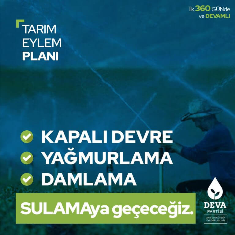 • Kapalı devre, yağmurlama ve damlama sulamayı hızla yaygınlaştıracağız.
