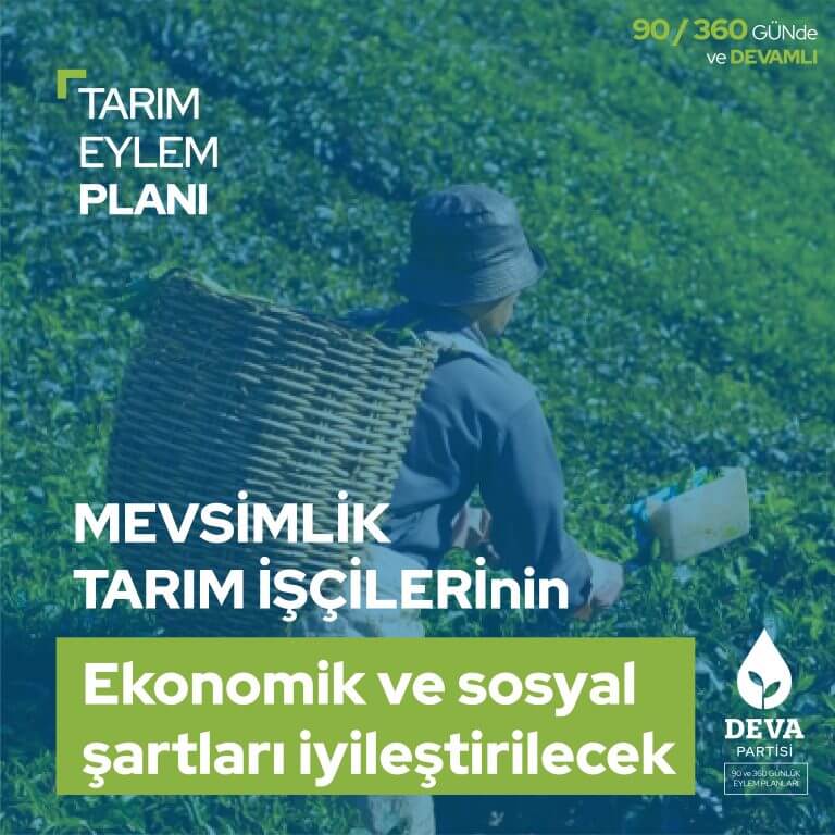 • Mevsimlik geçici tarım işçilerinin başta ulaşım, sağlık ve çocuklarının eğitimi olmak üzere sosyal ve ekonomik şartlarını iyileştireceğiz.