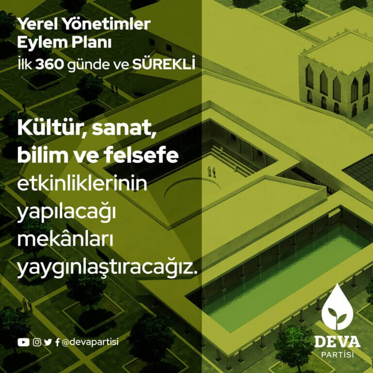 Yerel yönetimler insan ve çevre odaklı olmalıdır. Eşitlikçi şehirleri bir slogan olmaktan gerçeğe dönüştürmek kesinlikle bir ütopya değildir. Tıpkı şehirlere akıl aşılamanın, yani akıllı şehirler yaratmanın hayalden gerçeğe çok kısa bir zaman diliminde evirilmesi gibi… Biz, baş döndürücü değişim sürecini doğru okuyarak geleceğin şehirlerini bugünden tasarlayıp inşa etmeye bir ucundan başlamayı mümkün, kaçınılmaz ve ertelenemez görüyoruz. DEVA Partisi söz sahibi olduğunda, şehirlerimiz hak ettiği değere, insanlar hak ettiği şehirlere kavuşacaktır.